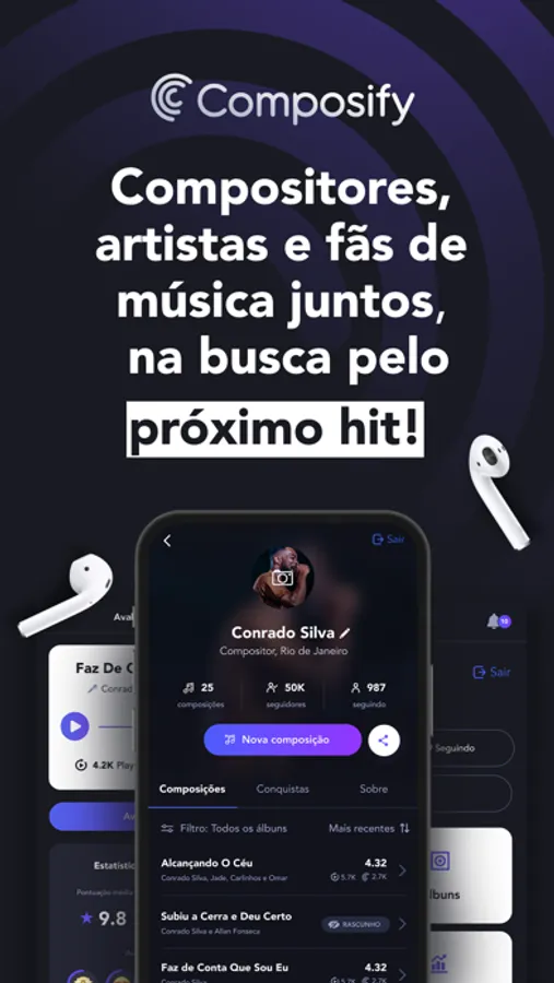 O Composify é uma plataforma que conecta compositores, artistas e fãs de música na descoberta do próximo hit!