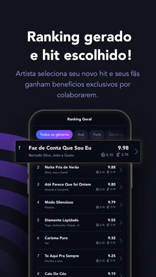 Artista seleciona seu novo hit e seus fãs ganham benefícios exclusivos por colaborarem.