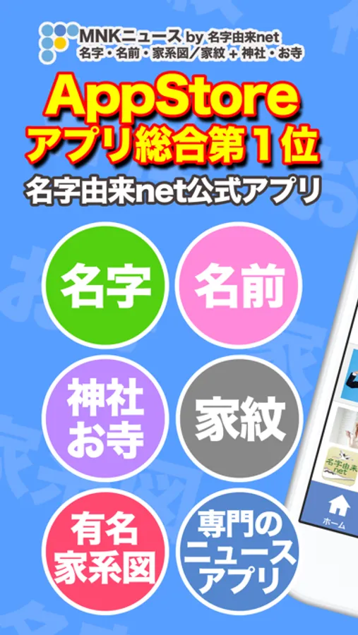 といった日本最大の専門サイトからのニュース配信と名字・名前・家系図/家紋+神社・お寺ニュースサイトと提携した「名字・名前・家系図・家紋・神社・お寺に関する専門家、研究家」の協力により、独自記事を配信している「日本最大の名字・名前・家系図・家紋・神社・お寺」専門ニュースチャンネルです。