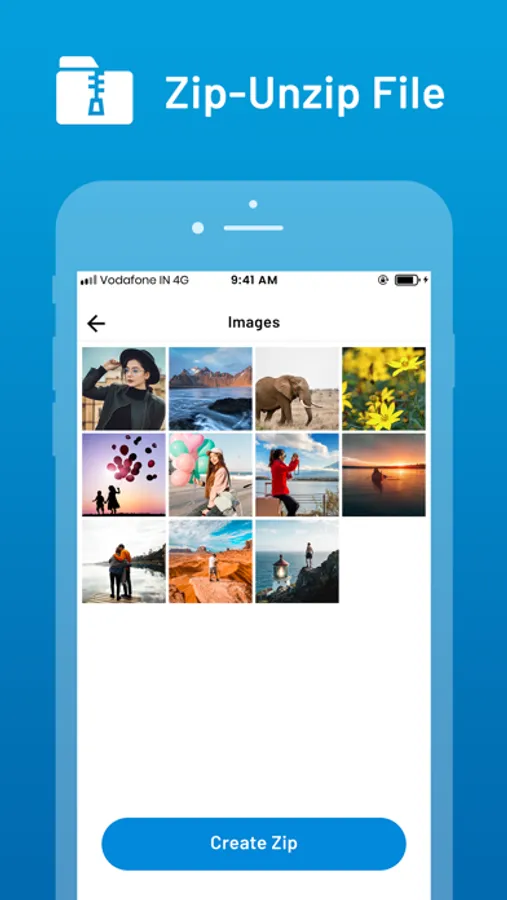 - Import photos and videos from Camera Roll and Compress photos into ZIP file including password protected.