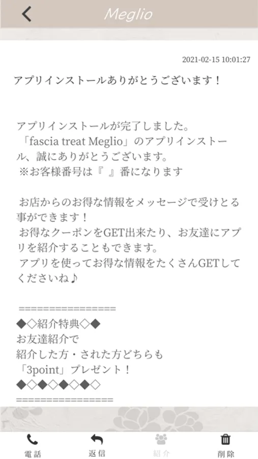 MeglioのアプリをSNSを通じてお友達に紹介する事ができます。
