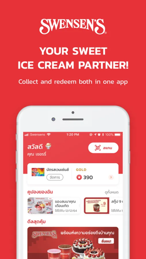 You can link your Swensen’s card and get the Swensen’s card benefit through the app.