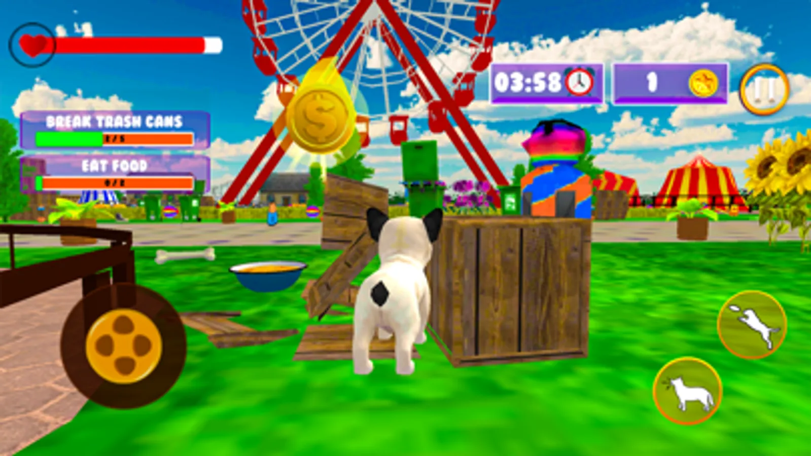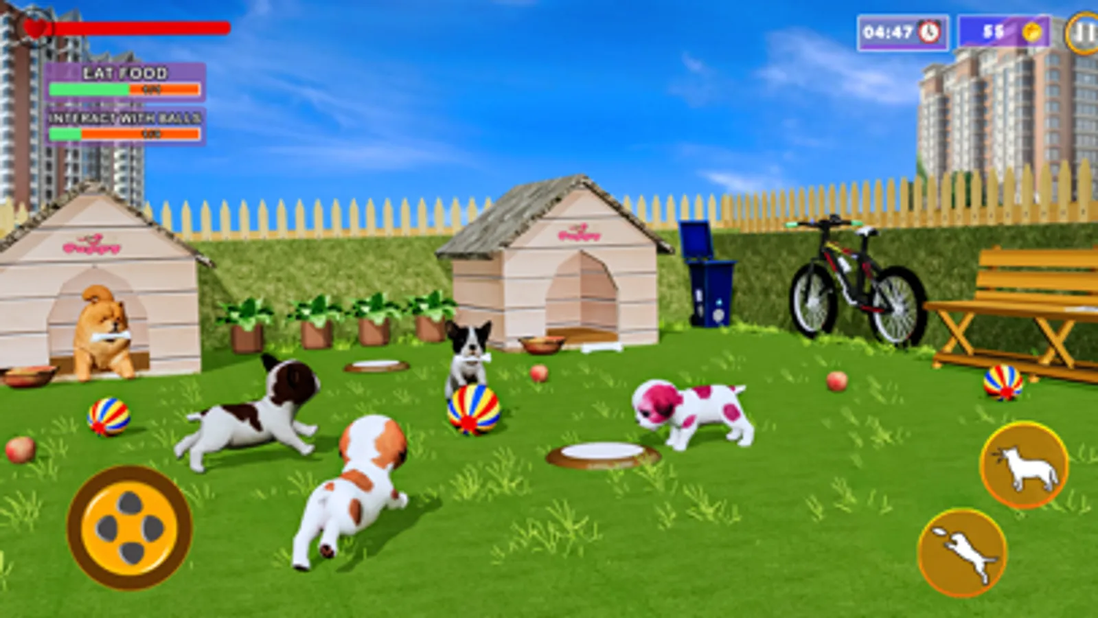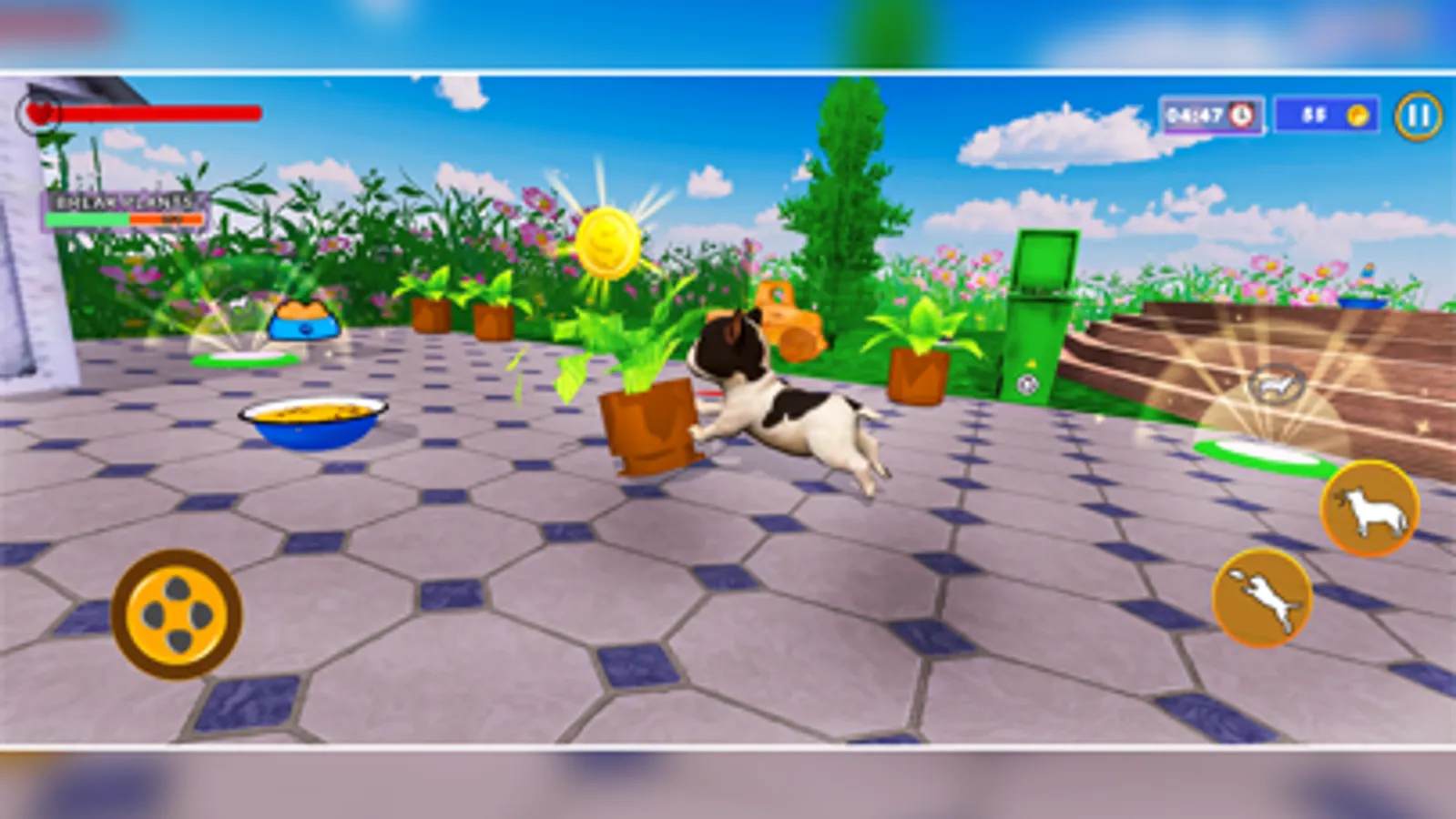 This game is about a pet puppy and its adventures. The puppy plays around the park performing different thrilling fun tasks. There are exciting props and challenges in this pet puppy game. There is dog food in every mission. Feed the dog in every mission like dog food and apples located in different places in the park. Each level of the game has various tasks. It includes wooden objects, plants and flowers. There are secret keys placed in various spots of the park. There are coins, collect them and increase points. The environment of the game is vast and has objects, the puppy needs to run into them to break them and earn points. In this game, there is also a cat on the way. The puppy has to pass the cat. Puppy adventure will be completed only if its tasks are completed on time. Once the timer stops and the mission is not completed, then the mission failed and the game is over. There is a puppy selection as well. There are multiple puppies in the game. Earn enough coins to unlock a new puppy. Play with a puppy of your own choice.