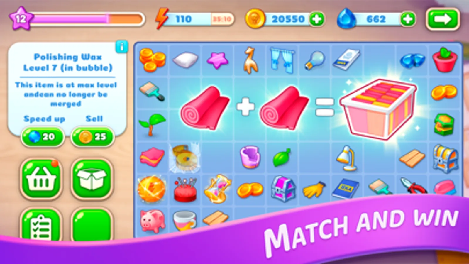 Enjoy merge gameplay - items will not just disappear when you match them, they will upgrade and evolve into useful tools and items that you can use to repair and decorate your house!