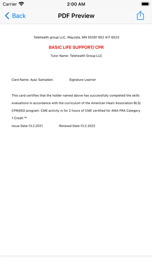A brief reference to skills learning required to qualify to provide BLS and CPR care. After completing a thorough study take answer questions to receive Continuing Medical Education Certificate in CPR and earn 2 hours of AMA PRA Category 1 Credits™