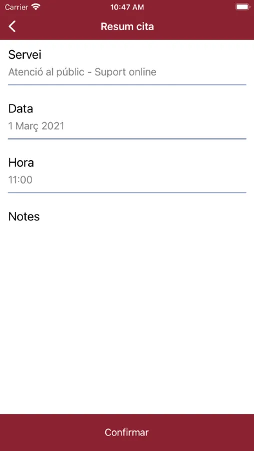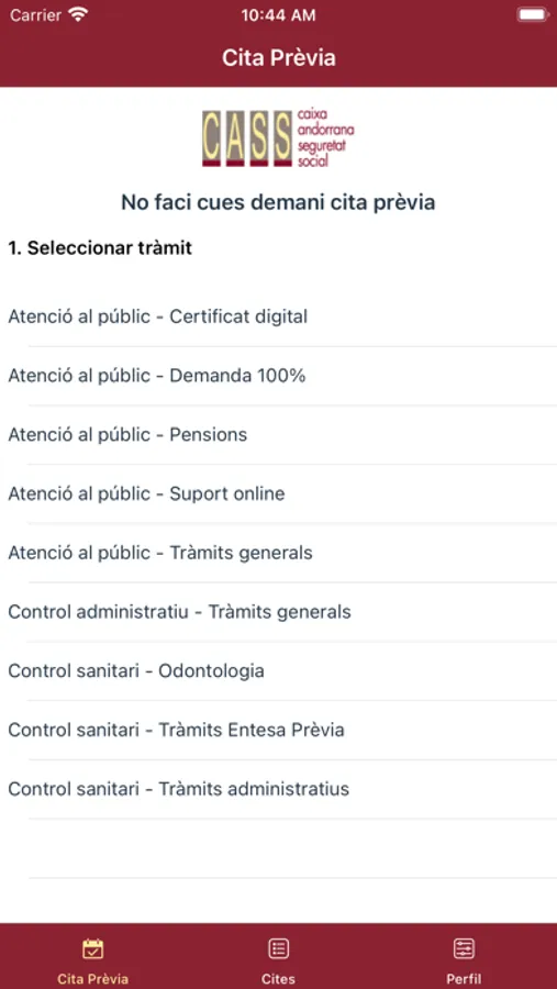 Ompli les seves dades personals, demani la seva cita seleccionant el servei, la data, l'hora i visualitzi i/o elimini les seves cites programades.
