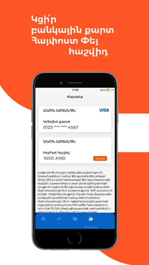 • Transfer to Armenian bank cards (for verified users)