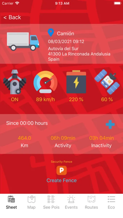 Esta aplicación le mostrará el estado de todos los sensores y periféricos conectados a sus vehículos, como por ejemplo sensores de carga de la batería, sensores de temperatura, detectores de arranque del vehículo, detectores de apertura de puertas, detectores de robo, etc.