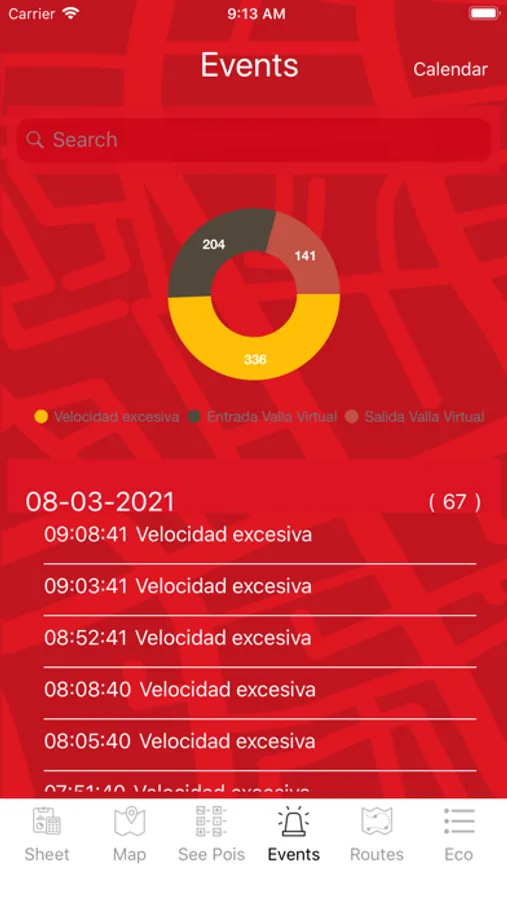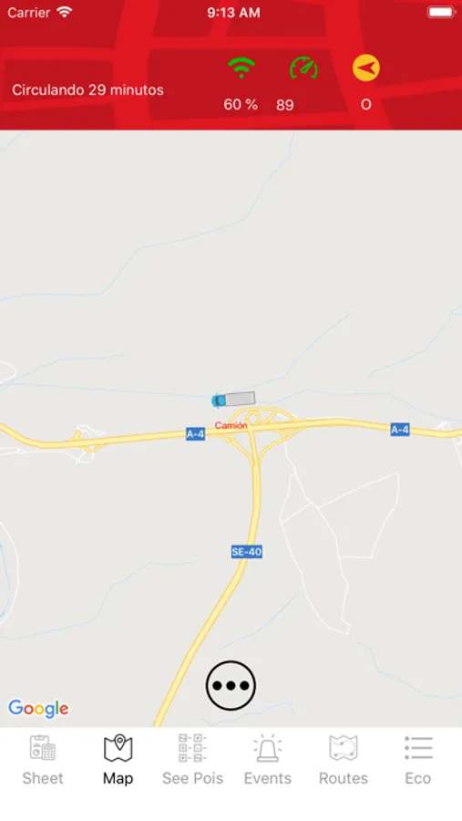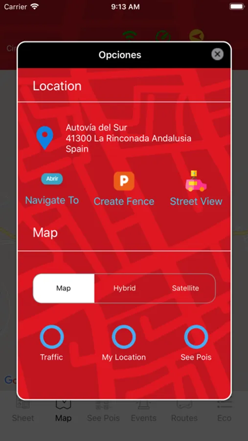 Esta aplicación le permite varios modos de visualización de la cartografía: Vista de mapa, vista de satélite, etc. Y podrá activar la capa de información de tráfico en tiempo real para observar las condiciones de circulación de todos los vehículos de su flota o planificar las rutas adecuadas en cada caso.
