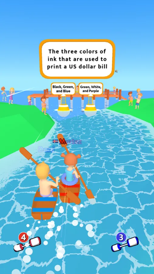 In Trivia Wipeout Race 3D, you try to answer as many questions correctly as possible to get more chances to win your opponents in a Wipeout battle.