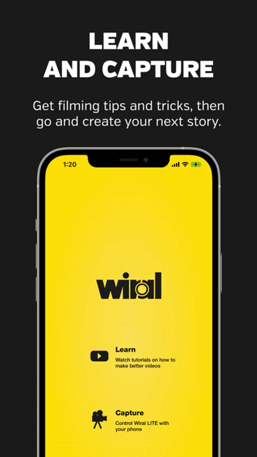 Visit the Learning section to get tips and tricks on filmmaking, then switch to Capture section to make some awesome content with Wiral LITE and your camera.
