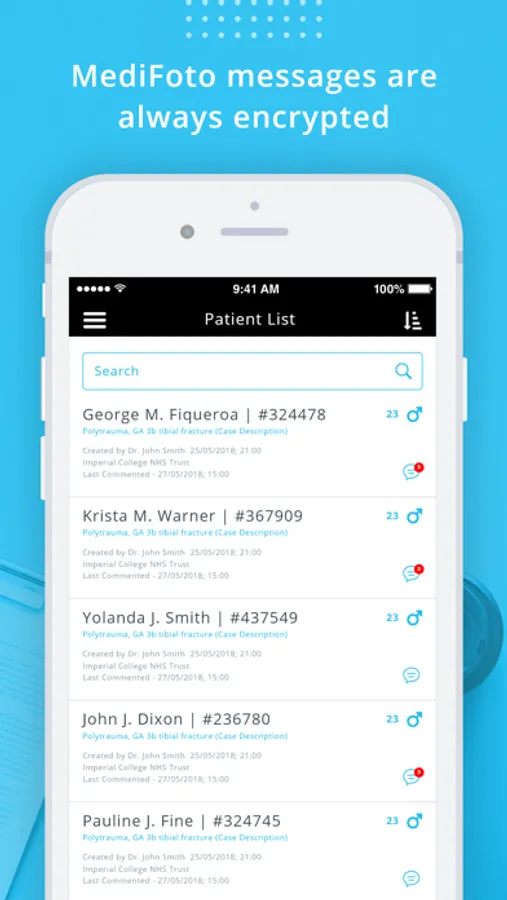 Safeguard and protect patient confidentiality with MediFoto where your messages and medical images are always encrypted.