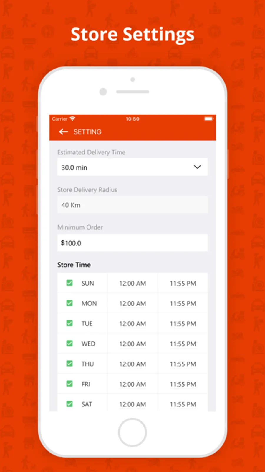 - Manage store information such as store name, address, estimated delivery time, delivery charges, packaging charges, etc.