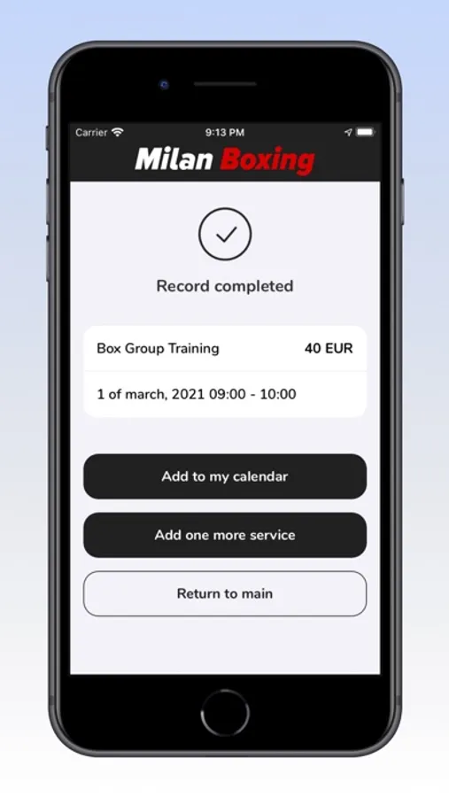 Milan Boxing App is a training booking platform allowing you to directly check available classes in a calendar and make a reservation.