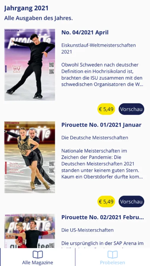 Die Pirouette ist seit 1968 das führende Magazin für Eiskunstlauf im deutschsprachigen Raum. Wir stellen die Stars der Szene vor, blicken hinter die Kulissen, porträtieren Persönlichkeiten, berichten über Resultate und Rekorde und nennen Daten und Termine. Seit über 50 Jahren!