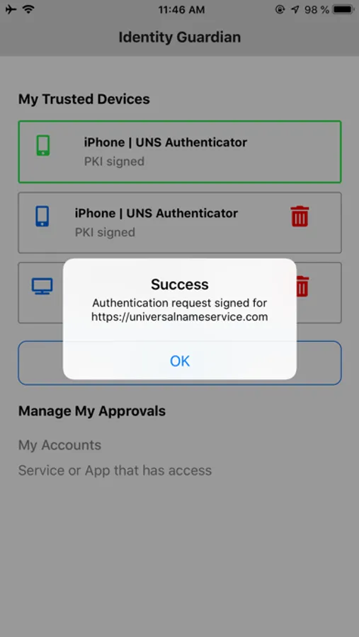 UNS separates access and identity into two separate entities: Identity Guardians representing users and Gateways representing services. These entities form a chain of trust between any user and any service.