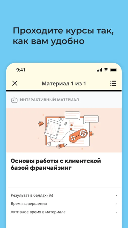 Проходите курсы, тесты, изучайте продукт, отслеживайте прогресс обучения, прокачивайте навыки в интуитивно понятном и простом приложении.