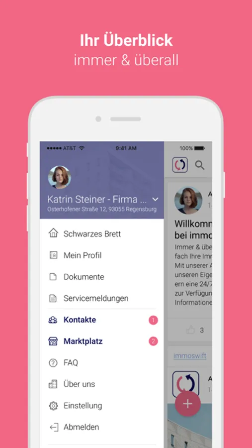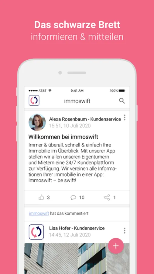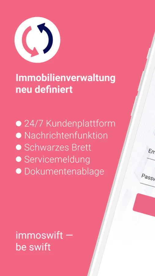 Immobilienverwaltung neu definiert. Immer & überall, schnell & einfach Ihre Immobilie im Überblick. Mit unserer App stellen wir allen unseren Eigentümern und Mietern eine 24/7 Kundenplattform zur Verfügung. Wir vereinen alle Informationen Ihrer Immobilie in einer App: immoswift - be swift!