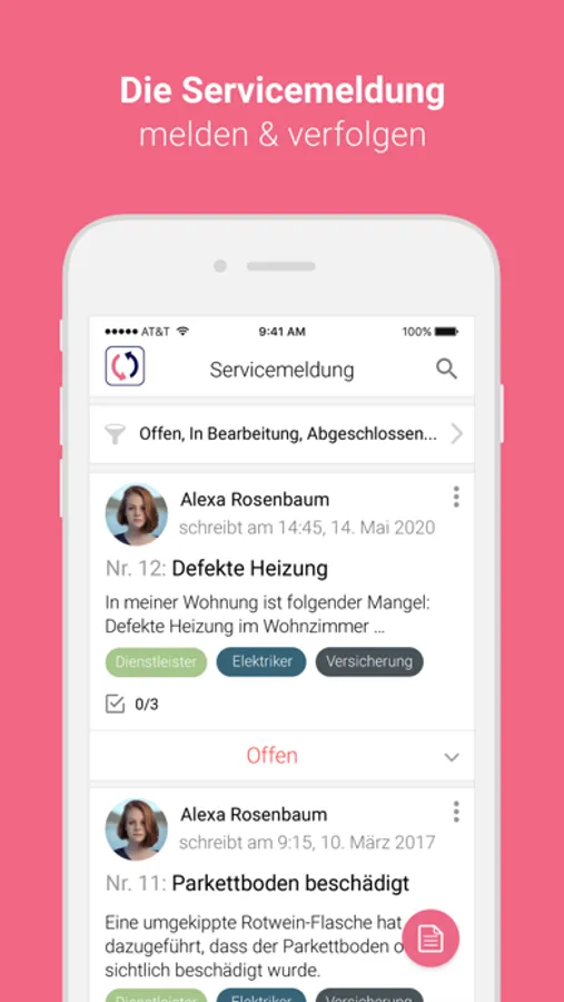 - Melden und verfolgen Ihrer Servicemeldung: Mit dem digitalen Kundenservice der immoswift App übermitteln Sie Ihr Anliegen unkompliziert und rund um die Uhr. Sie empfangen regelmäßig ein Status-Update per Push-Nachricht.