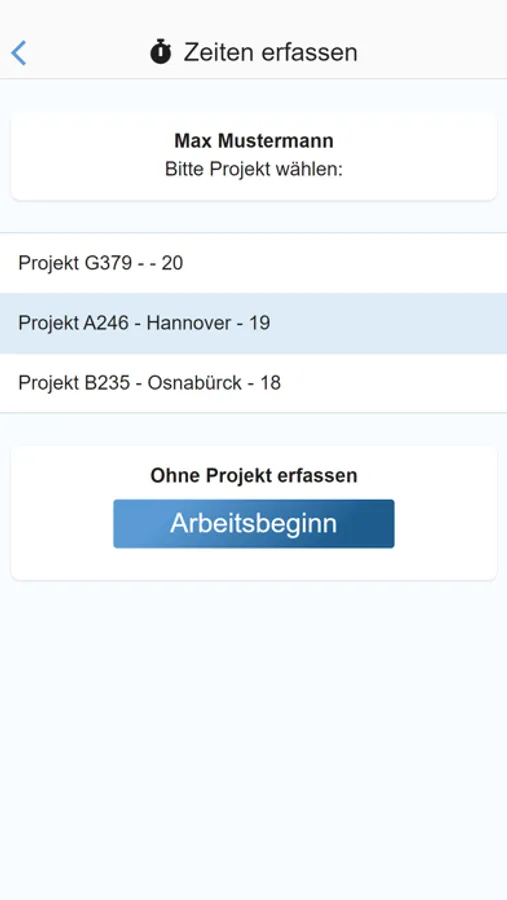 Es kann ebenfalls die reine Arbeitszeit dokumentiert werden, ohne sie mit Projekten o.ä. zu verknüpfen.