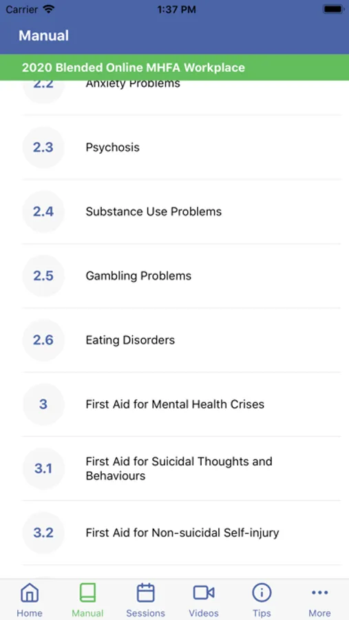 online and offline the Youth Mental Health First Aid manual, the details of their lessons including