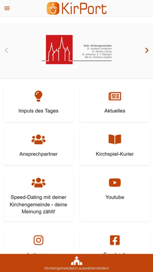 - Alle wichtigen Informationen und Links (z.B. Pfarrbrief, Aktuelles, Social Media) Ihrer Kirchengemeinde direkt verfügbar