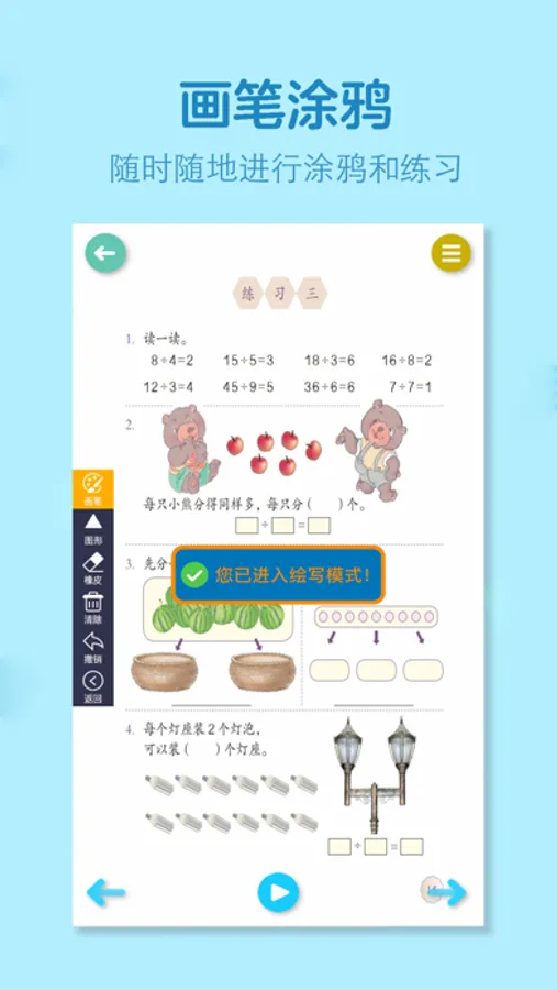 【2】画笔功能,全屏涂鸦让学习更加的有趣让学习更加高效率。完全同步最新发行教材,绝无缺漏页现象。
