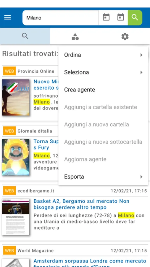 La piattaforma è dotata di un motore di ricerca che consente di trovare articoli, passaggi radiotelevisivi e post interrogando – tramite parola chiave - un database costituito da fonti stampa, web, social network, radio e TV e che conta oltre 120.000 nuovi documenti ogni giorno.