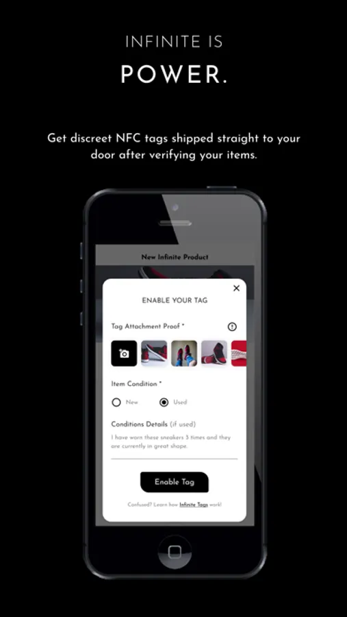 Infinite for Business allows trusted resellers to authenticate their sneaker inventory and activate it on a permanent database of sneakers, sharing the story of the item’s ownership history and enhancing trust with collectors.