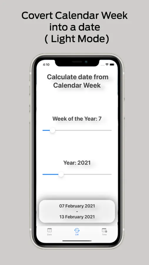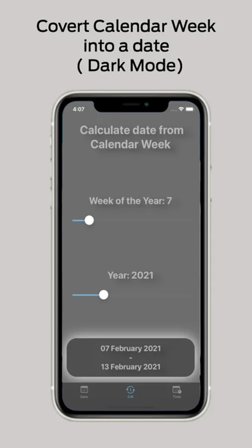 You can either calculate the calendar week from a specific date or a data from a specify calendar week and year