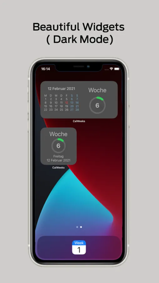 Two beautiful widgets ensure that you stay focused on the current day and calendar week