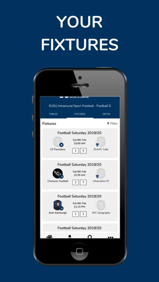 With a range of purpose-built features, the EUSU app makes it easier for participants to view upcoming fixture information, manage teams and enter your competition results. And with a handy search function, students and staff are able to easily find and join intramural leagues and book onto sessions within seconds.