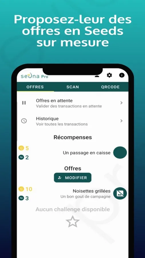 - Scanner les QR-Codes de vos clients (ou membres) Sedna, afin de valider leur éco-geste (consommation responsable, réalisation d'un défi écologique, etc) et qu'ils reçoivent leurs Seeds en échange.
