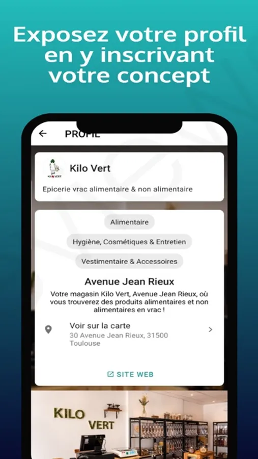 - Modifier le profil de votre magasin, enseigne ou association : ajouter votre logo, une photo, une description, etc. Ce profil apparaitra à chaque fois qu'un utilisateur de Sedna cliquera sur votre enseigne sur son application.