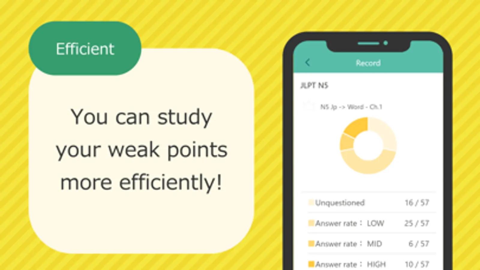 The learning history is recorded, so you can efficiently study only the questions with a low percentage of correct answers.