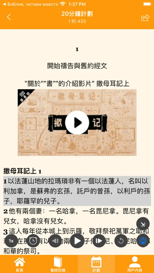 如今,您可以與自己的小組一起來宣讀聖經。作為神的子民,神的話就是我們生命的糧。常常一起閱讀和聆聽聖經,讓我們愛神的話就像愛美食一樣簡單。願您在神的話語裡成長,用聖經來裝備自己成為神的工人! 感謝您的加入,讓我們一起宣讀聖經!