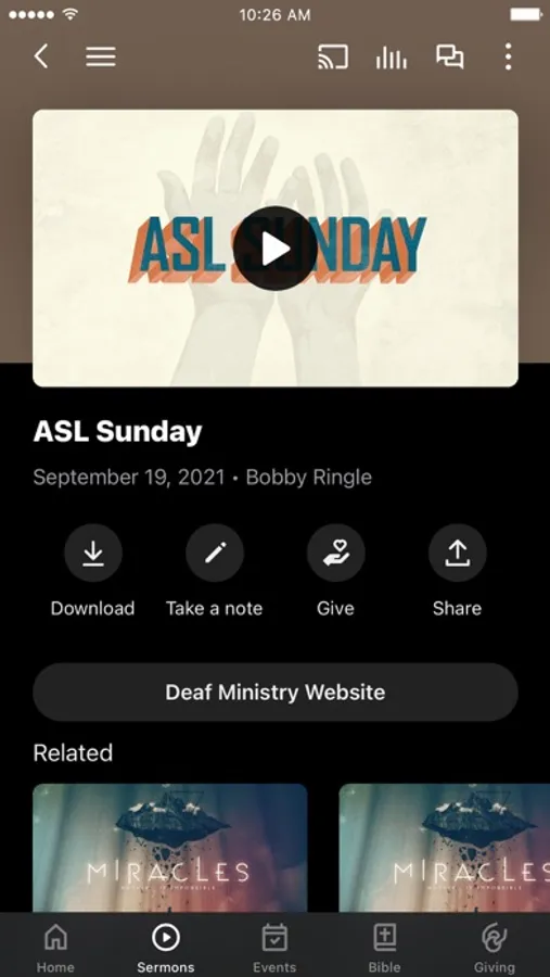 This app will help you stay connected with the day-to-day life of our church. With this app you can: watch or listen to past messages; stay up to date with push notifications; share your favorite messages via Twitter, Facebook, or email; and download messages for offline listening.