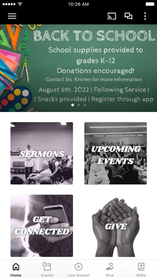 This app will help you stay connected with the day-to-day life of our church. With this app you can: watch or listen to past messages; stay up to date with push notifications; share your favorite messages via Twitter, Facebook, or email; and download messages for offline listening.