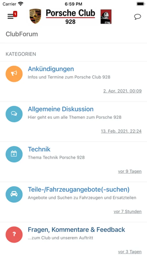 The 928 Forum iOS app allows access to optional Porsche Club 928 Websites.