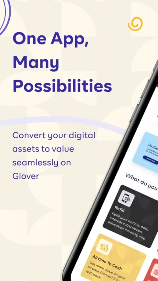 Trade your digital assets, Refill your data, electricity, internet and all subscriptions seamlessly on Glover.