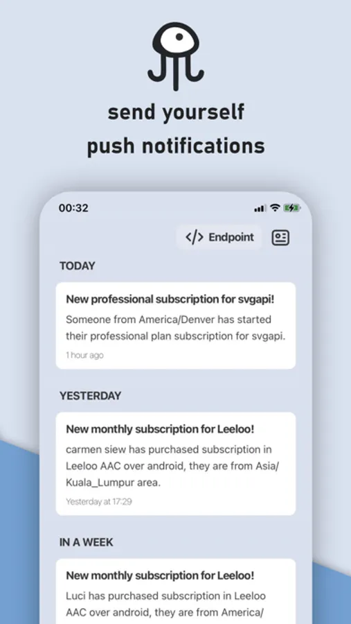 Tenta is a client for cross platform push notifications, that you can hook your own products. This allows you to be aware of the critical actions or events that are happening in your non-human co-workers, aka your online products.
