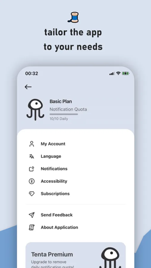 All the functionality of the Tenta app is free with the daily 10 notification quota. With Tenta premium you can increase your quota to “unlimited” notifications.
