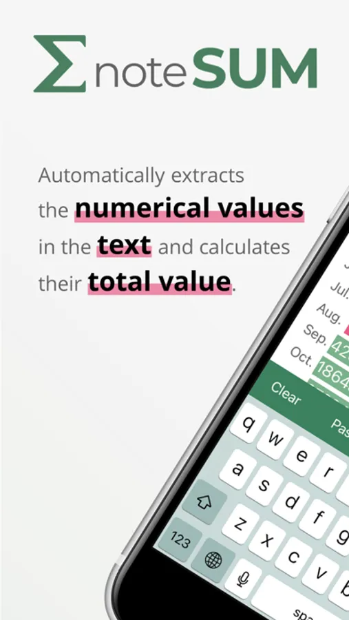 noteSUM is an application that automatically calculates the sum of numerical values entered in a text.