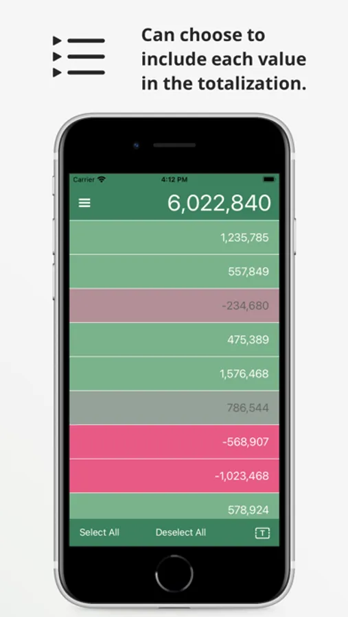 It also numbers extracted from notes are listed, and you can choose to include or exclude them from the total for each number.