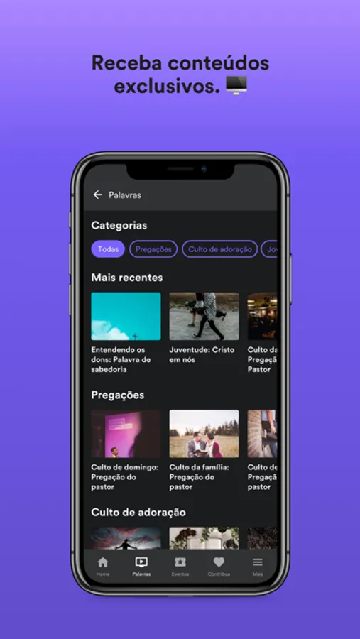 - Siga a agenda e fique por dentro de tudo que acontece na igreja, inscreva-se em eventos e tenha seus ingressos sempre com você.