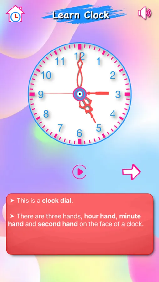 Children can learn the clock by own with the help of 'Play with Clock' feature.