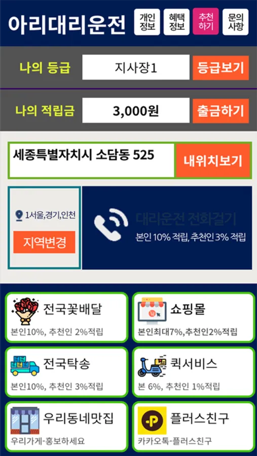 손쉽게 나 지역 근처에 있는 대리운전을 호출 할 수 있습니다.