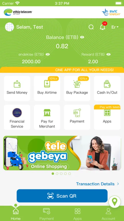 Enjoy the convenience of telebirr SuperApp by making transactions solely on your mobile. No need to travel and carry physical cash, no need to switch between apps to complete different transactions, everything you need is available at the tip of your mobile.