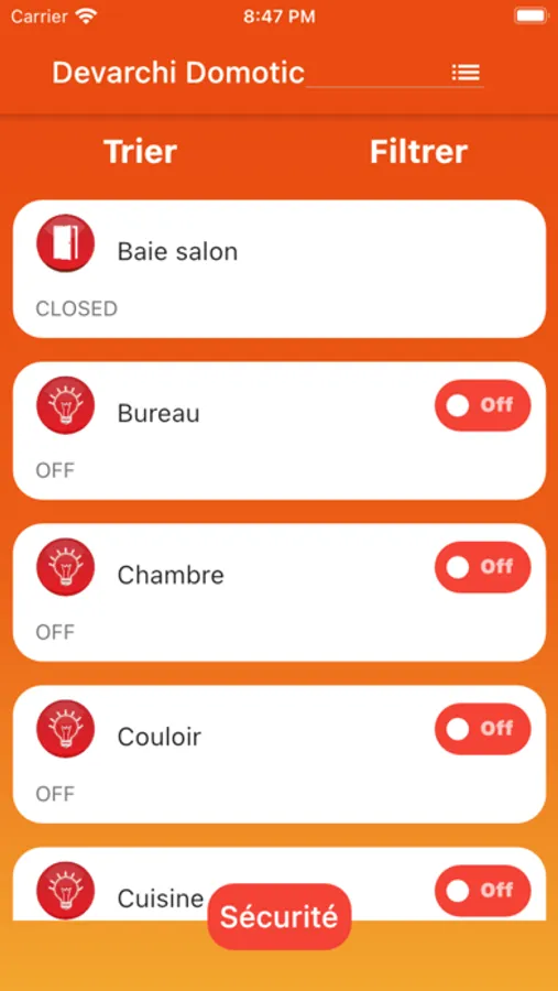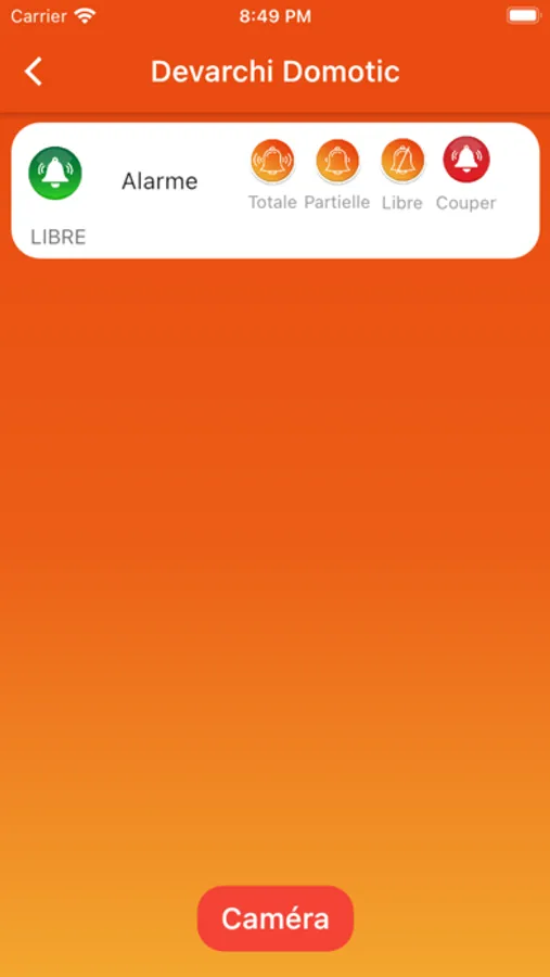 Enfin l'activation de l'alarme (intrusion, incendie) et tout votre système de sécurité se fait depuis n'importe où avec l'application DEVARCHI DOMOTIC.