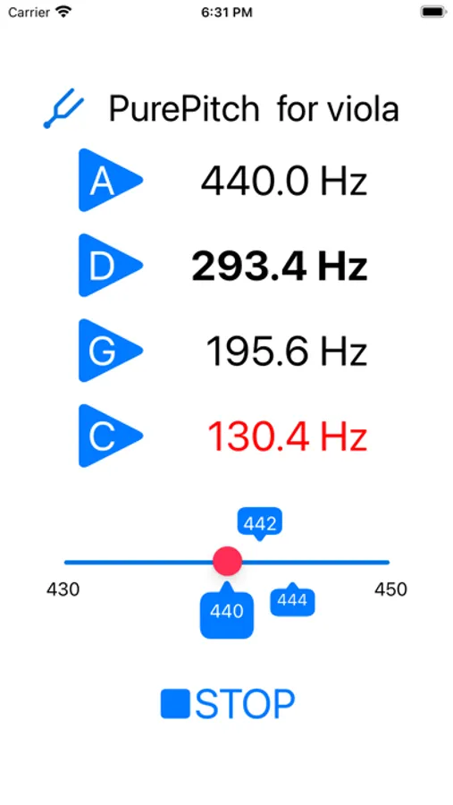 A=430〜450Hz対応。純正律での音階発音基準器です。